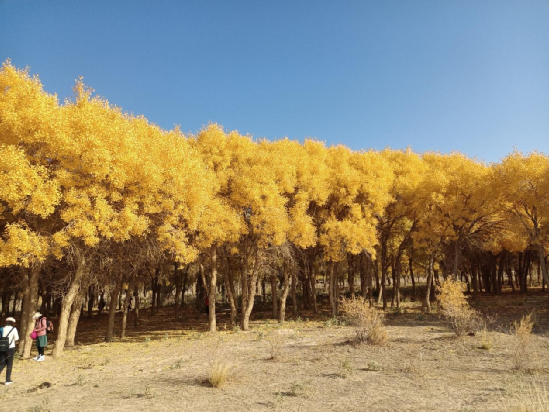 胡楊是多變的,春夏為綠色,深秋為黃色,冬天為紅色。胡楊又是堅強的樹種,有“生而千年不死,死而千年不倒,倒而千年不朽”之說。全國有多處胡楊林區(qū),但最為美麗,最為壯觀,胡楊林最為聚集的地方就是額濟納旗胡楊林了。