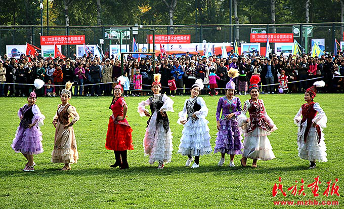 中央民族大學哈薩克語言文學系學生表演哈薩克族舞蹈