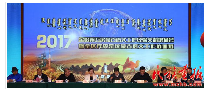 2017年11月28至29日,內(nèi)蒙古自治區(qū)第五次蒙古語文工作經(jīng)驗(yàn)交流現(xiàn)場(chǎng)會(huì)暨全區(qū)民委系統(tǒng)蒙古語文工作培訓(xùn)班在內(nèi)蒙古自治區(qū)阿拉善盟召開