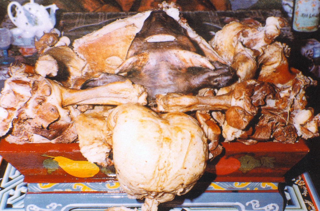 全羊席,又稱整羊席(蒙古語(yǔ)為“布禾勒”或“酥斯”),是蒙古人招待貴賓的傳統(tǒng)佳肴,也是蒙古民族最古老、最隆重的一道宴席,一般只在盛大宴會(huì)、隆重集會(huì)、舉行婚禮或接待高級(jí)貴賓時(shí)擺設(shè)。將整羊加工后擺在長(zhǎng)方形的大木盤(pán)里,像一只臥著的羊,肉味鮮美,香飄滿堂。賓客在進(jìn)餐前,還要舉行一定的儀式,高唱贊歌,朗誦獻(xiàn)整羊祝詞等。據(jù)文獻(xiàn)記載,成吉思汗曾設(shè)過(guò)全羊宴。忽必烈登基時(shí),也設(shè)全羊宴祭神祇、待賓客。至清代全羊宴更加盛行,現(xiàn)已成為蒙古民族風(fēng)格接待貴賓的名貴菜肴,馳名中外。