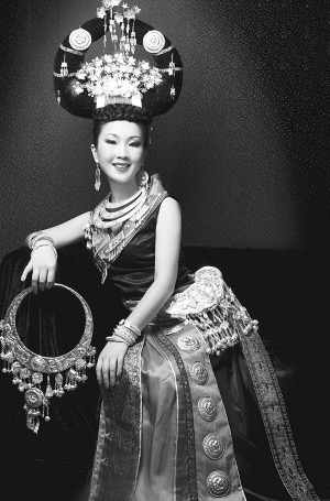著苗族盛裝的阿娜丹。 阿娜丹供圖