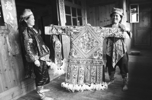 自稱“夜郎王后裔”的“蒙正”苗族,其婦女的服飾頗有特色 沿襲母系氏族遺俗,楊吳氏(左)家兒女的名字“...