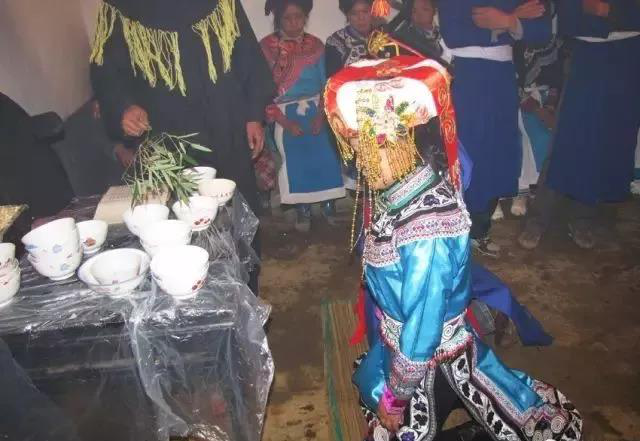 ?。?、源自于民族歌舞文化習俗。彝族是個能歌善舞的民族,自古就有以歌作媒,用歌表達對異性的愛慕和追求的傳統(tǒng)。相傳,彝族先祖篤彌時,洪水淹沒了世界,而篤彌按照天神策舉祖的授意,躲進自造的木桶中幸免于難,成了世間的獨人。天神為了不讓人種在世間滅絕,于是就安排天上三仙女尼友咪比、婁友咪多、吞友武吐下凡到人間,在唄谷懇嘎這地方設(shè)歌場,與篤彌唱歌又跳舞,談情又說愛。整個歌場上,熱鬧不一般:天上的仙女,成群來歌場;野人拿舞具,老虎打燈籠;人熊吹蘆笙,歡聚在歌場。彝族的先祖,就是通過歌舞迎得了仙女的歡欣的而成就婚姻而繁衍了彝人的。從此,彝族青年談情說愛、談婚論嫁,都離不開歌舞。歌舞逐漸地融入了婚禮場中,與婚禮上的各種儀式進行對接和植入,通過上千年的發(fā)展,就形成了“阿買懇”?!鞍①I懇”中的“阿買”指未婚女子,“懇”有“歌舞”、“跳舞”之意。如“唄谷懇嘎”中的“懇嘎”就是歌舞場壩的意思;“懇合”(鈴鐺舞蹈)中的“懇”也有跳的意思;還有“懇咪”,指的是關(guān)于歌舞的詩文??梢?,“懇”(歌舞)的內(nèi)容是相當豐富的,因而彝族出嫁時有出嫁歌,這完全是在情理之中的。