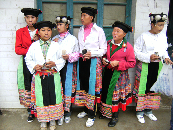 各地布依族求子習(xí)俗不盡相同,比較具有代表性的有“搭花橋”“做橋”和“改都雅”。布依族普遍信奉“娘娘神”,結(jié)婚多年而未生子的育齡夫婦,要請(qǐng)布摩擇吉日搭一座“花橋”,向娘娘神求子,稱為“搭花橋”?!白鰳颉迸c“搭花橋”的目的和意義基本相同,但形式和規(guī)模稍有差異?!白鰳颉钡囊?guī)模較大,舉行儀式時(shí),全部親戚都要到齊,相當(dāng)隆重?;顒?dòng)通常要延續(xù)3至7天,內(nèi)容豐富,有歌、舞、武術(shù)等,用布依語唱《米魂引花歌》《粽子引花歌》和《雞蛋引花歌》等20余部與求子相關(guān)的古歌,人們一邊唱一邊將白布扔向插在花筒里的“紅紙花”,粘上一枝花,就標(biāo)志得一個(gè)孩子,其場面熱鬧非凡。在貴州省的安順一帶布依族地區(qū),新媳婦懷第一胎時(shí),為了讓她能順利生下長子或長女,要在家中舉行“改都雅”(敬門神)儀式,設(shè)壇奉獻(xiàn)豬肉、公雞、酒、糯米飯等祭品,由舅家選擇一對(duì)竹節(jié)一致、高矮相同的金竹,派兩名男性長者送竹前來祝賀,意為“神竹送子”。此外,在一些地方還有“要回傘”和“要花糯米飯”的求子習(xí)俗。