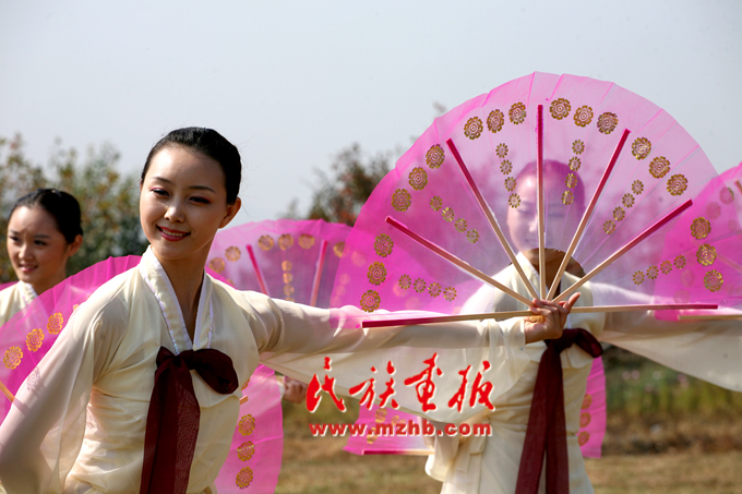 十月的延邊碧空如洗,大地歡歌;十月的山村層林盡染,稻谷飄香。這是農(nóng)民們最為向往的季節(jié),耀眼的陽光給剛剛收獲過的土地鑲上了一層迷人的金邊,累累碩果被婦女們輕快地端上了餐桌。在寬闊的體育場上,彩球升騰、人聲鼎沸,一場盛大的慶?;顒?dòng)—農(nóng)樂舞表演即將拉開序幕……