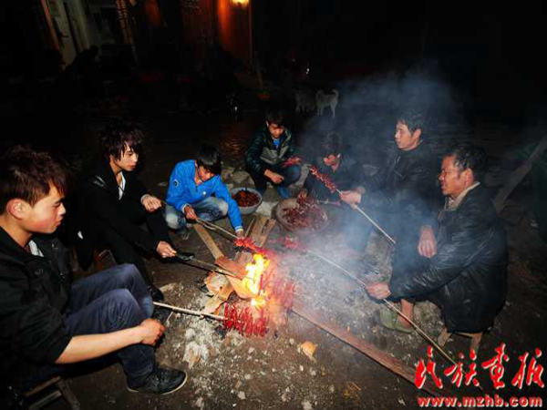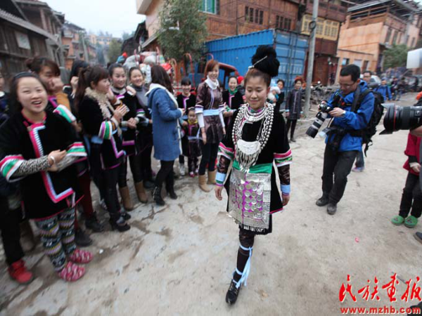 這次結(jié)婚的共有15對(duì)新人(多時(shí)有二三十對(duì)),均來自本寨的青年男女?;槎Y從大年二十六開始,共進(jìn)行三天,在三天的婚禮中新郎新娘家均有婚宴,尤以第一天中午的規(guī)模最大也最為隆重。