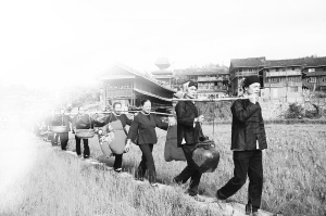 在侗家,男方在婚禮前需行“認舅禮”,而舅父也一定要給外甥女準備出嫁賀禮。資料圖片