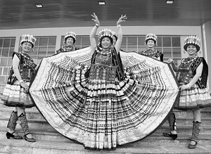 由廣西壯族自治區(qū)南丹縣文藝工作者自行創(chuàng)作編導(dǎo),由中老年人表演的白褲瑤風情舞蹈《美麗的百褶裙》,于2013年6月赴京參加由中央電視臺綜藝頻道與中國舞蹈家協(xié)會共同舉辦的《舞蹈世界》欄目特別節(jié)目“舞蹈全民星”的錄制。舞蹈《美麗的百褶裙》通過藝術(shù)的手法,從不同角度展示了被聯(lián)合國科教文組織譽為“人類文明活化石”的南丹縣白褲瑤民族多姿多彩、內(nèi)涵豐富的服飾文化。