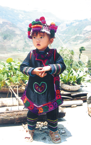 哈尼族制作服飾的歷史悠久,村村寨寨都有本民族自行研制的成套木制服飾制作機(jī)(制線機(jī)、絞線機(jī)、織布機(jī)等),家家戶戶都有制作服飾的能手。不論是逢年過節(jié),還是日常的農(nóng)閑時間,哈尼山寨隨處都可以看到婦女們制作服飾的場景。有的是獨(dú)家用一套服飾制作機(jī),有的是幾家合用一套服飾制作機(jī),以純棉花為原料,自行設(shè)計(jì)制作,形成一套獨(dú)辟蹊徑的服飾制作技術(shù)(制線、絞線、織布、染布、服飾設(shè)計(jì)、裁剪、刺繡等)。她們能用繡、挑、扣等方法,在衣褲上刺繡各種花卉、龍、虎、雞、鳥、魚等復(fù)雜的圖案,精致巧妙,鮮艷奪目。