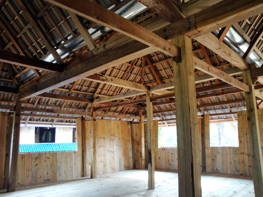 德宏瑞麗一帶的竹樓由“干欄”和平房?jī)刹糠纸M成,“干欄”是住房,平房是廚房。“干欄”多為長(zhǎng)方形,下層架空,可堆放雜物。上層做橫向分割,成一間堂屋和數(shù)間臥室。堂屋中設(shè)有火塘,一般用于燒茶,在一角設(shè)有佛龕。堂屋外有開敞的前廊和曬臺(tái)。屋頂為歇山式,脊長(zhǎng),坡面平緩,外墻開窗,有的還是落地窗,墻與屋頂之間有縫隙,這些都加強(qiáng)了室內(nèi)空氣的流通,達(dá)到了室內(nèi)陰涼的效果。
