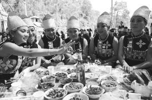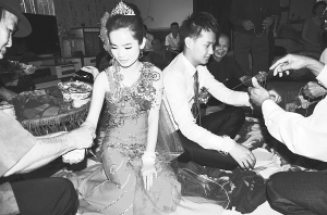 2013年11月19日,在人們“水——水——水——”的祝福聲中,漢族小伙子戴龍與傣族姑娘玉金喜結(jié)良緣...
