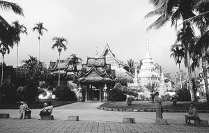 覺悟的菩提樹下,是橙色的佛寺,小和尚攤開構(gòu)紙抄寫的經(jīng)書,輕輕誦讀,構(gòu)樹婆娑,掛滿鳥語。