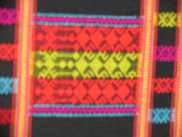 從龍被的圖案中,我們可以辨別出它是屬于哪個年代的作品。早期的圖案多為人形紋和鬼紋(人的靈魂),這兩種圖案實際上都是一樣的,是由色彩的明暗來區(qū)分的,明的是人形紋,暗的是鬼紋。后來的龍被,因受漢族文化的影響,圖案也逐漸漢化了。因此,后期的龍被,織物和部分圖案保留黎族文化,而刺繡的花紋圖案都是漢文化的。
