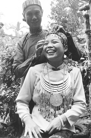 農(nóng)歷臘月初四是黎家人認(rèn)定的兔日,吉利的日子。海南省保亭響水鎮(zhèn)合口管區(qū)什棟村的女青年陳銀蕾和離該村不遠(yuǎn)的什 村男青年吉永權(quán)就選這天結(jié)為百年之好。他們經(jīng)過(guò)了自由戀愛(ài),一切均按照黎族風(fēng)俗提親、定婚、舉行婚禮。
