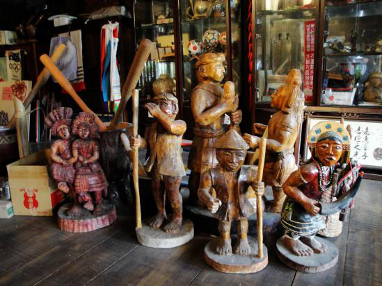 雕刻。高山族的雕刻以木雕和石雕為主,金屬雕刻是現(xiàn)代才出現(xiàn)的。排灣和魯凱兩個族群的雕刻工藝最為發(fā)達(dá),也最具特色。木板雕刻的紋樣與石壁雕刻大致相似,只是木板雕刻多施色彩,少則紅、白兩種色,多則加上黃、橙、藍(lán)、綠色不等,鮮艷亮麗,引人注目。一般住屋內(nèi)外都有雕刻,貴族的住屋裝飾尤其突出。立柱和壁板雕刻的主題多為敘述家族神話、傳說起源或表彰家族的特殊事跡。雕刻的題材以神話傳說、狩獵生活、祖靈像為主;木雕以人像、人頭、蛇紋、野豬和鹿紋為主;其他還有重圓紋、太陽紋、網(wǎng)形、風(fēng)車形,四葉形、人體生殖器等等。這些題材與排灣人的原始宗教、神話內(nèi)容有密切的關(guān)聯(lián)。住屋的木雕取材于質(zhì)地堅硬的樟木、臺灣櫸、二葉松等喬木,而木桶、木臼、木椅等器物,除了堅硬木材外,也選擇樟木,烏心石等。至于木匙、煙斗、木梳則喜歡用月橘之類的材質(zhì)。