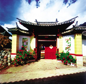 束河、沙河古村鎮(zhèn)到處都是納西族的田園式庭院。大門(mén)的裝飾與圍墻和屋脊的裝飾相呼應(yīng),庭院里種了許多植物,高的果樹(shù),矮的花草,就像一個(gè)小花園,和田間彌漫著的野薔薇都散發(fā)著令人陶醉的幽香。