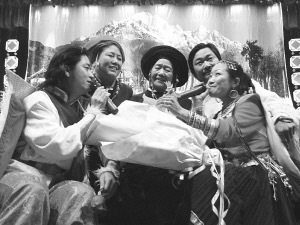 2008年,阿玻赴美國參加聯(lián)合國之春藝術(shù)節(jié)的演出。在匹茲堡,有一位70多歲的老太太觀看了阿玻參加的3場演出。她對阿玻說:“雖然我沒有去過你的家鄉(xiāng),也聽不懂你唱的歌詞,但是透過你的歌聲我能想象到,你的家鄉(xiāng)一定有雪山、草地、牛羊,有溫暖的陽光,那一定是個(gè)美麗的地方?!卑⒉5男脑谀且豢填潉?dòng)了。他說:“在美國,我用納西語演唱了《夢中的香格里拉》。雖然語言不通,但是人們還這么懂我的歌,讓我很感動(dòng)?!?/p>