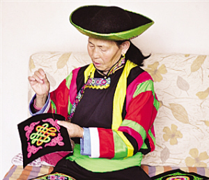 目前,在松德村,依靠盤繡為家庭創(chuàng)收的土族婦女占全村婦女總數(shù)的60%,每逢當(dāng)?shù)丶谢蛑苓呧l(xiāng)鎮(zhèn)舉辦才藝展示活動(dòng)時(shí),她們就帶上自己的盤繡作品去展示、參賽。