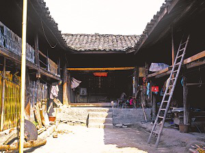 梁河縣九保鄉(xiāng)的阿昌族民居也為三合院,正房的堂屋大都是敞開(kāi)式,裝飾簡(jiǎn)單,左右?guī)烤o湊,院落很小。兩側(cè)廂房樓下,一邊是廚房,一邊是豬圈、牛欄;樓上,一邊是未婚子女的臥室,一邊存放糧食、雜物。