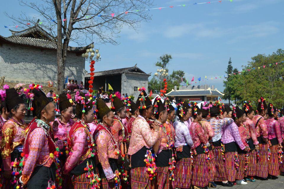 各地男子的服飾大同小異,均留短發(fā),未婚男子包一頭或兩頭鎖彩邊的白布或黑布包頭,已婚男子包藏青色布包頭。青年男子的包頭上往往插有鮮花或絨球飾。穿藍、白、黑等素色斜紋布對襟布扣袢上衣,黑色或藍色長褲,系黑色綁腿。未婚婦女留長發(fā)盤辮。穿白、藍色對襟銀扣上衣,黑、藍色長褲。系繡花飄帶黑布裙。