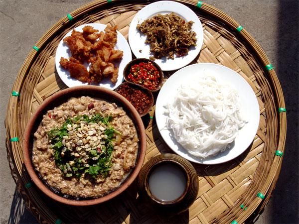 阿昌族還喜歡吃竹筍、竹蛆和蜂蟲、蜂蛹等。竹筍的吃法有鮮竹筍、干竹筍、腌酸筍等。鮮竹筍肉嫩細香,可當蔬菜,也可與肉、豆類等炒著吃。竹蛆是一種生在嫩竹中的蟲蛹,色白個大,肉肥細嫩。有時一節(jié)竹子中有數(shù)百條,取出后用油炸脆,色澤金黃,撒點鹽而吃,是一種高蛋白鮮美食品。食用的蜂蟲、蜂蛹主要有黃腰蜂、夜時蜂、草蜂等土蜂類的蛹和幼蟲?;蛘ɑ虺矗愦嗫煽?,營養(yǎng)豐富。