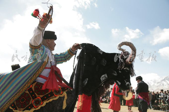 塔吉克族另一種獨(dú)具特色的舞蹈木偶舞,俗稱“乖孩子”。 塔吉克族人口少,喜愛孩子,所以木偶的形象多為小孩。舞者左手持小木棍,并把它裝縶成懷抱著的小男孩,右手撫摸哄逗,載 歌載舞,非常有趣。木偶舞的傳統(tǒng)劇目有《商人與馬》、《心愛的寶寶》、《叨羊》等,劇中還會(huì)使用到木馬、耗牛、羊等造型 的道具,表演形式近似漢人的“跑旱船”和“跑驢”。演員的下半身是布簾扎成的馬、牛身體,前有馬牛首后有尾,以夸張模樣的木偶來邊喝邊舞,表現(xiàn)形式活潑幽默,深受人民喜愛,是塔吉克族民間傳統(tǒng)娛樂的方式。