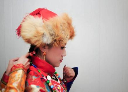 從那以后,裕固族姑娘出嫁就借用這頂“吐魯格排爾克”成親配對,不管春夏秋冬結(jié)婚,新娘提前三天就要戴在頭上。一直到現(xiàn)在,還保留著這個(gè)習(xí)俗。