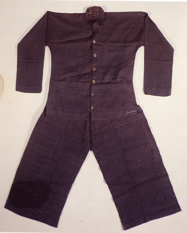 現(xiàn)今所能考證,顯示出傳統(tǒng)京族人在日常生產(chǎn)生活中穿著打扮都較為灑脫。京族男子的服裝,大多是無領(lǐng)、無扣、袒胸、窄肩的上衣,寬而長的褲子。男衣衫長過膝蓋,顏色用淺青、淺藍(lán)或淺棕三種;褲子習(xí)慣穿黑色,既寬又長;其褲襠見長,長度幾乎是褲長的三分之二。京族男性并不用服飾來展現(xiàn)自己的魅力或者身份,許多京族男性更加鐘情于腰帶,以此來表明自身的身份,以腰帶的多少來顯示自己的富?;蚰芨伞K?,腰帶是京族男性最看重的裝飾物。腰帶越多,越能顯示自己。