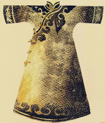 早期的赫哲人制作的魚皮服飾很簡單,只是遮蔽、取暖和御寒,沒有造型設計。隨著時代的變遷、手工技藝水平的不斷提高,赫哲人對服飾美的追求也就越來越多了。對魚皮服裝不斷修飾。魚皮衣服上的裝飾大體有三種形式:一是緄邊或鑲邊;二是緝縫裝飾圖案或紋樣;三是綴飾掛件。一般在緄邊或鑲邊時要選用有顏色的魚皮。將染有紅黃藍紫白黑等不同顏色的魚皮鑲嵌或緄縫于不同的衣物上。還用不同顏色的魚皮剪成各種云紋、鳥獸、如意圖案縫在衣物的背部、領口、袖口或衣襟上。將貝殼、銅鈴、獸骨、古錢及其他金屬等裝飾物,縫在衣物的下擺或腰際。