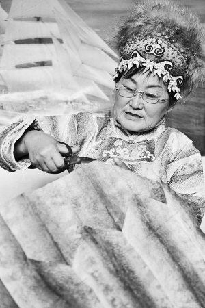 “赫哲族的魚皮衣、魚皮褲的特點(diǎn)是輕巧、耐用、不透水。” 尤文鳳說,“平時(shí)魚皮衣如果在木頭桌角劃了一下...