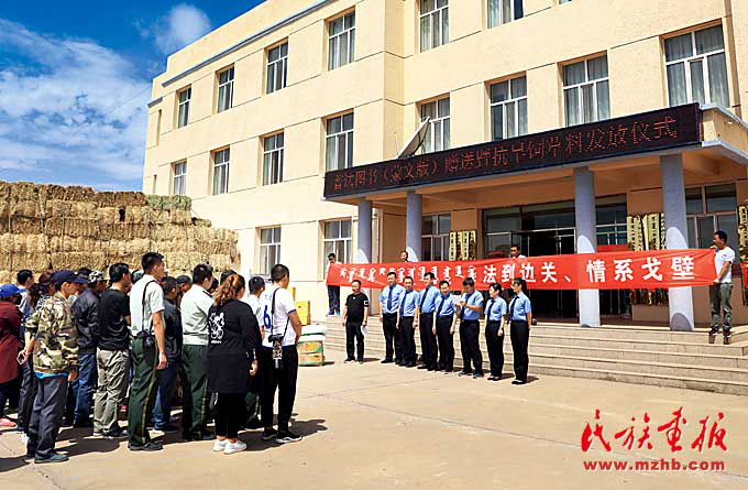阿拉善盟檢察分院的“法到邊關(guān)、情系戈壁”《普法宣傳教育叢書(shū)(蒙古文)》贈(zèng)送暨抗旱救災(zāi)飼草料發(fā)放儀式。