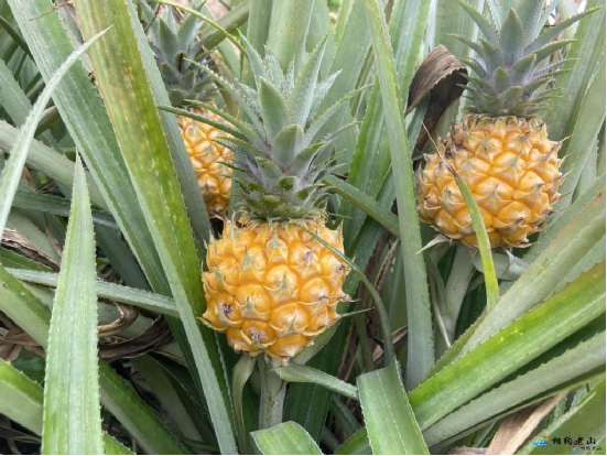 “我現(xiàn)在再砍去一些菠蘿的葉子,防止采收時(shí)割傷,同時(shí)讓太陽(yáng)曬到菠蘿,讓菠蘿更好吃?!辈ぬ}地里,金黃的菠蘿隱藏在綠色的“皇冠”和葉片之下,馬停紅正在修剪菠蘿葉。