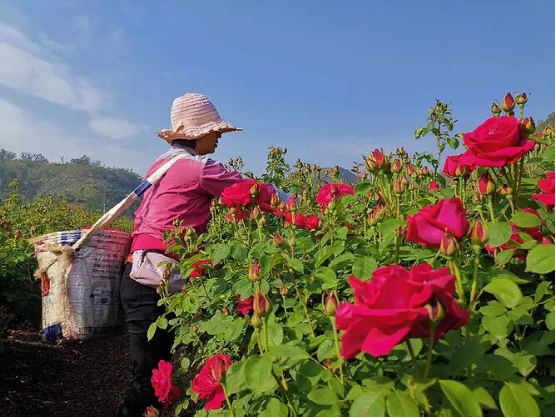 2019年,阿舍鄉(xiāng)斗南村成立清香玫瑰合作社,通過土地流轉(zhuǎn)種植玫瑰105畝,主要種植金邊玫瑰、墨紅玫瑰、藍(lán)蝴蝶等品種。通過幾年的發(fā)展,斗南村的玫瑰花茶已經(jīng)形成“種植、加工、銷售”為一體的產(chǎn)業(yè)化發(fā)展模式,每年帶動就業(yè)200多人,戶均增收1萬多元。