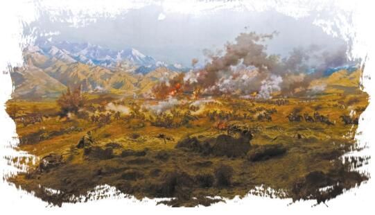 中國工農(nóng)紅軍西路軍紀念館內(nèi)復原當年戰(zhàn)斗場景的油畫。賈泓 鄭思哲攝