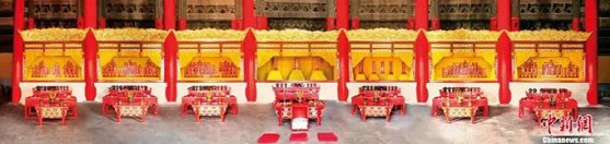 歷代帝王廟景德崇圣殿內7開間龕位與188位入祀帝王牌位。(中新社發(fā) 許偉 供圖)