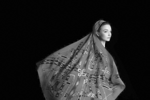 星空密碼絲巾上的紋樣圖形是和上古時代的文明聯(lián)系在一起的。傳說中的“洛書”即“九宮圖”的原型,就保留在古老的苗繡服裝上。中國造型文明的起始源于星相學的認知。關(guān)于這些傳說,在古老的苗繡中找到了印證與答案。設(shè)計沿用古老繡片上保留下來的這些神秘符號,通過再演繹,讓古老的智慧穿越時空,熠熠生輝。
