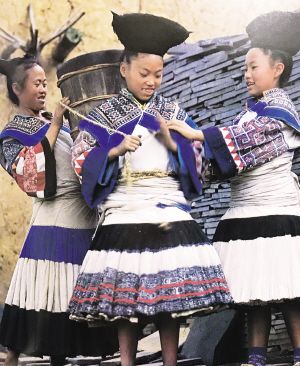 貴州大方縣顯母村苗族女性的“疊穿”裙