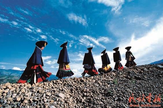 在農(nóng)耕文化盛行的地區(qū),如大渡河河谷地帶的四川嘉絨藏族婦女,則喜歡穿百褶裙和圍腰,戴精美的刺繡瓦狀帕;云南省迪慶藏族自治州金沙江河谷的藏族聚居地區(qū),因氣候溫暖,婦女則喜歡穿絲綢質(zhì)地的百褶裙。