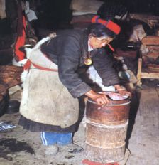 藏族生活在號稱“地球第三極”的青藏高原上,高寒的高原氣候,嚴酷的生存環(huán)境,造就了藏民族勇敢剛毅的民族個性,也形成了藏民族獨具高原特色的飲食文化,藏鄉(xiāng)的酥油茶便是其中一朵奇葩。酥油茶是藏鄉(xiāng)群眾日常生活所必需的一種飲料,也是藏族人民待客、禮儀、祭祀等活動不可或缺的用品,極具民族特色和文化內(nèi)涵。剛進藏的漢族干部,要適應高原環(huán)境,首先要過生活關,其中重要的一條就是能不能喝酥油茶。顧名思義,酥油茶由酥油、茶和食鹽三種原料做成。