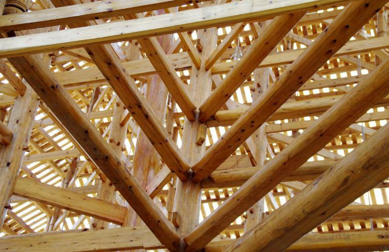中國的木建筑構架一般包括柱、梁、枋、墊板、桁檁、斗拱、椽子、望板等基本構件。這些構件相互獨立,需要用一定的方式連結起來才能組成房屋。在中國建筑中,原則上采取榫卯連接的方式,必要時也會用鐵釘。