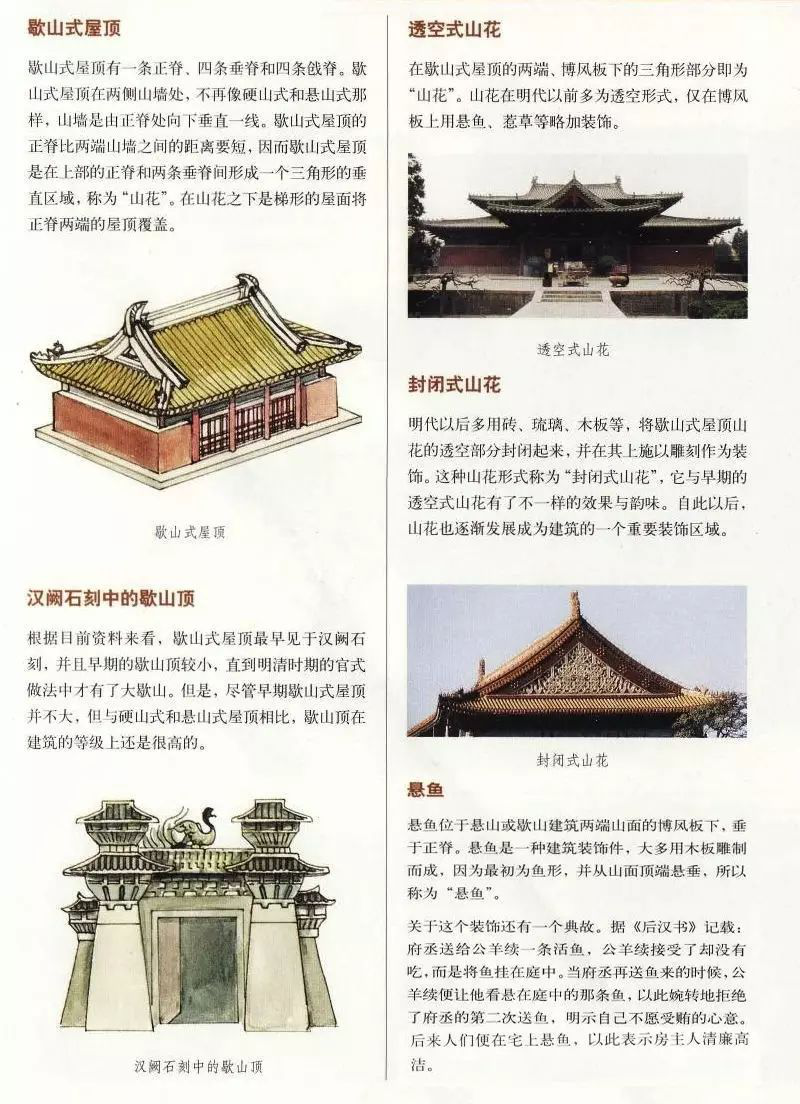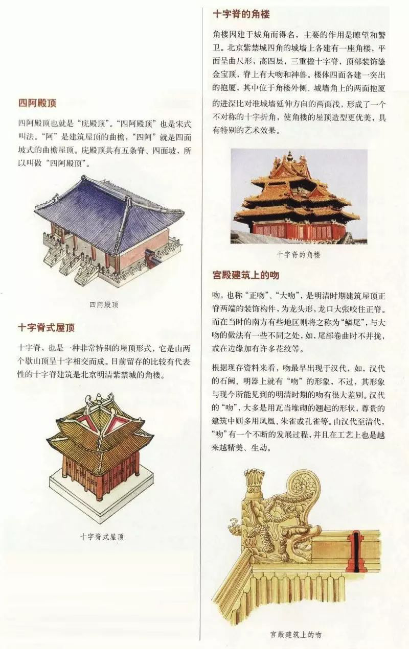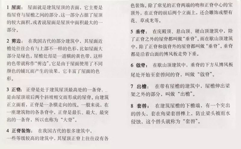 中國古代建筑屋頂不僅樣式多,而且組成部分也有好幾種,主要由屋面、屋脊等部分組成,而且有嚴(yán)格的等級(jí)制度。