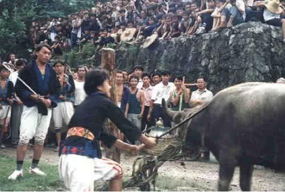 砍牛、打銅鼓是白褲瑤為死者舉行葬禮的儀式,整個(gè)葬禮悲壯、肅穆,祭祀場(chǎng)面氣氛凝重莊嚴(yán),這種傳統(tǒng)送喪習(xí)俗,既是表達(dá)遺屬對(duì)死者的悼念,也是一項(xiàng)眾人共同的祭祖活動(dòng),銅鼓、皮鼓,是葬禮活動(dòng)的主要打擊樂(lè)器。