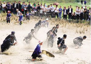 近日,貴州省黔東南苗族侗族自治州黎平縣龍額鎮(zhèn)龍額侗寨慶祝傳統(tǒng)節(jié)日“春社節(jié)”,當(dāng)?shù)丶爸苓叺貐^(qū)的少數(shù)民族同胞歡聚一堂,開(kāi)展吃“社飯”、撈“社魚(yú)”等民俗活動(dòng),祈求風(fēng)調(diào)雨順。