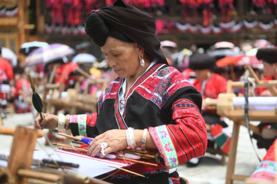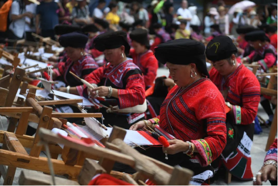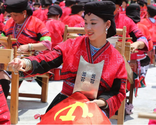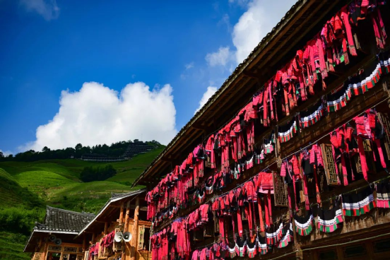 2014年,龍勝瑤族服飾(紅瑤服飾)以其精湛的手工藝和文化底蘊(yùn)入選國(guó)家級(jí)非物質(zhì)文化遺產(chǎn)代表性項(xiàng)目名錄擴(kuò)展項(xiàng)目名錄。如今的“曬衣節(jié)”已不僅是紅瑤的傳統(tǒng)佳節(jié),“農(nóng)歷六月六,廣西龍脊看紅衣”等曬衣節(jié)系列活動(dòng)已成為桂林山水游的一張名片,讓各地游客充分感受多姿多彩的民族風(fēng)情。紅瑤同胞們用自己獨(dú)特的方式,為中國(guó)共產(chǎn)黨成立100周年獻(xiàn)上自己的祝福。