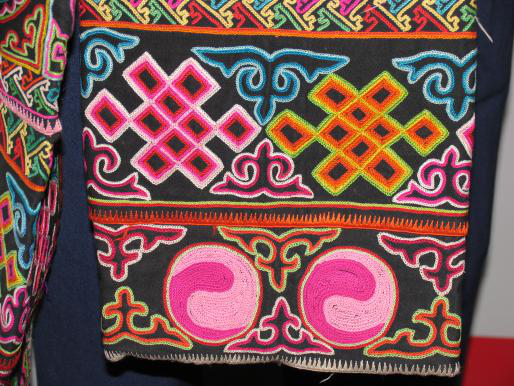 土族的刺繡堪稱一絕,是我國(guó)少數(shù)民族刺繡藝術(shù)中的一朵奇葩。土族刺繡所用的布料有絲綢、斜紋布、條絨布、自制手紡棉粗布、絨毛布等,為襯托色彩絢麗的線繡圖案,布料顏色以黑、紅、藍(lán)三色為主。繡線有棉線、絲線、銅絲線和金銀捻線等。常用的繡法有平繡、盤繡、鎖繡、切針繡、剪貼繡等。土族的刺繡品種多樣,構(gòu)圖飽滿,色彩艷麗,多用在腰帶、衣領(lǐng)、筒袖、鞋面、煙袋等衣物和裝飾品上?;ブぢ橐粠У耐磷迥星嗄晷厍按蠖加袎K四寸方連續(xù)圖案,叫“富貴不斷頭”。土族女子到七八歲就開(kāi)始跟著母親、姐姐等學(xué)習(xí)刺繡藝術(shù),等到了十七八歲就練就出一手好針線活了。到了節(jié)慶集會(huì)的時(shí)候,土族婦女會(huì)拿出自己的刺繡精品,展示自己的刺繡藝術(shù)。未婚姑娘非常珍愛(ài)自己的刺繡品,如果有哪位小伙得到了姑娘的刺繡品,就相當(dāng)于得到了她的芳心(劉軍供圖)。