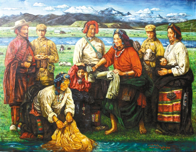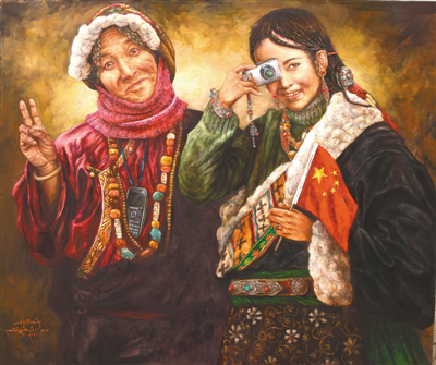 “以前畫畫時,對自己的最高要求就是畫得要逼真,把油畫畫得像一幅放大了的照片,而現(xiàn)在關(guān)注的是如何畫出能體現(xiàn)當(dāng)代的畫面。西藏的美是無窮無盡的,我就想用繪畫的方式窮盡一生去追求,展現(xiàn)大美西藏?!比缃竦乃髀?,淡去了初出茅廬時一味追求畫面質(zhì)感的匠氣,多了些許內(nèi)心對西藏這片熱土深層次的思考。他筆下的西藏是一片充滿生機(jī)的土地,濃墨重彩之間,既有對傳統(tǒng)和過往年華的回望和懷念,又在仿若不經(jīng)意間透過一個眼神、一抹色彩、一個小物件盡情詮釋活力和希望。