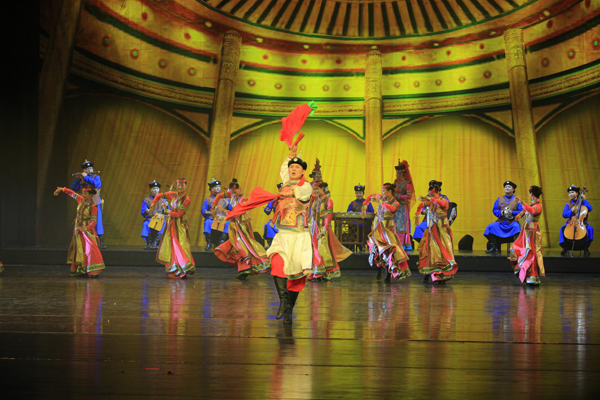 作為蒙古民族歌舞和民俗風情最具代表性的經(jīng)典節(jié)目,《鄂爾多斯婚禮》已風靡草原,享譽國內(nèi)外。那動聽悠揚的歌曲,優(yōu)美豪放的舞姿,華麗獨特的服飾,特別是那貫穿其中的鄂爾多斯蒙古族民間婚禮儀式,情節(jié)曲折,情思深幽,再現(xiàn)草原久遠而優(yōu)美的傳統(tǒng),表現(xiàn)了鄂爾多斯蒙古族人民對生活的熾熱情感和豪爽善良的性格,反響熱烈,久演不衰。