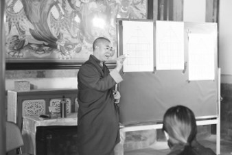 10月20日,更登達(dá)吉在繪畫唐卡體驗(yàn)活動(dòng)中。張式宜攝