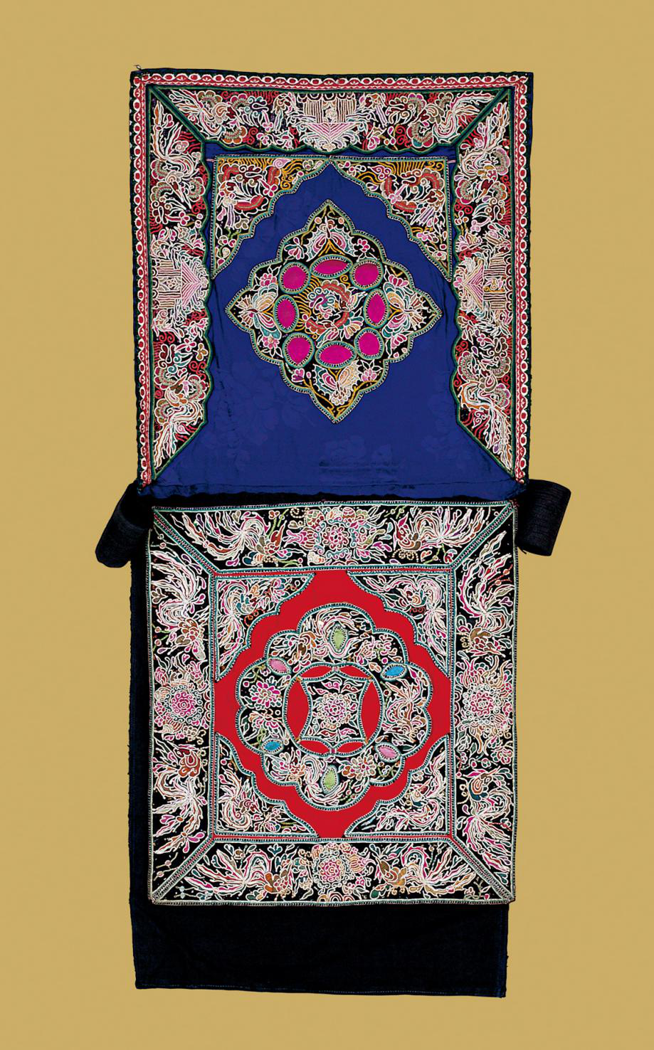 侗繡是侗族婦女最擅長的工藝,它是農耕文化的產物。侗族刺繡已被列為少數民族優(yōu)秀文化遺產,并且已經逐漸走上產業(yè)化的道路。在侗族服裝中有許許多多的刺繡,它們出現在不同的部位,樣式、顏色也各不相同。除了服裝,刺繡在頭巾、嬰兒背帶、婦女胸兜、布花鞋、鞋墊、煙袋、挎包等也十分普遍。一件刺繡作品的完成,首先要把構想或需要的圖案以剪紙的形式呈現出來,其次將剪紙貼在布條上,布條只有綠色、紅色和黃色。刺繡時,左手固定布條,右手自如地上下穿針。刺繡的顏色也基本上以紅色、綠色和藍色為主,十分貼近大自然。繡品不僅具有極高的裝飾價值,其反復繡綴的工藝還能增加衣物的耐用度。在侗繡中最出名的要數平秋侗繡。其發(fā)源于九寨,集紡織、印染、剪紙、刺繡于一體。這種繡種僅在錦屏縣平秋鎮(zhèn)及周邊的侗族群體中世代相傳。