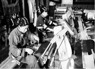 在這些土家女人手上,一架織錦機,就是一個大千世界,它能真實或者夸張地織出存在于山上田野的所有物像。雖然她們的文化水平不是很高,卻能創(chuàng)造出一些很抽象的西蘭卡普圖案。有時,我更愿意這樣說:西蘭卡普是一種與人俱存的藝術。